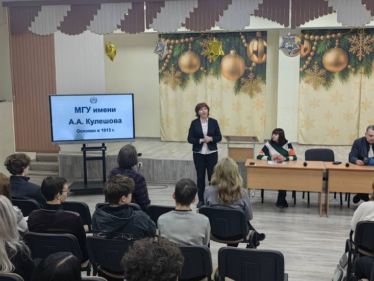 Декан факультета педагогики и психологии детства, ответственный секретарь приёмной комиссии Е. А. Башаркина рассказала потенциальным абитуриентам о факультетах и специальностях приёма-2026, различных возможностях поступления, преимуществах обучения в МГУ имени А. А. Кулешова.