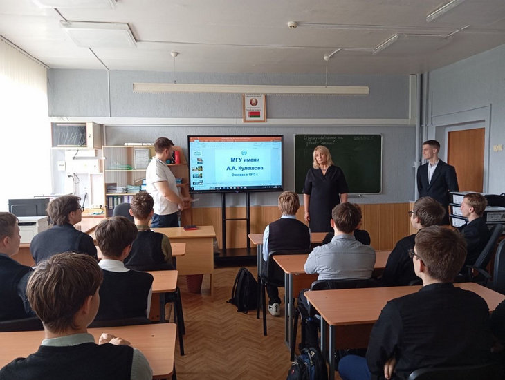 С целью ориентации учащихся на дальнейшее получение образования в нашем университете 9 сентября 2025 года делегация МГУ имени А. А. Кулешова посетила государственное учреждение образования «Средняя школа № 2 г. Белыничи». Университет представляли декан факультета математики и естествознания Сакович Наталья Владимировна и старший преподаватель кафедры физики и компьютерных технологий Шилов Артур Владимирович.