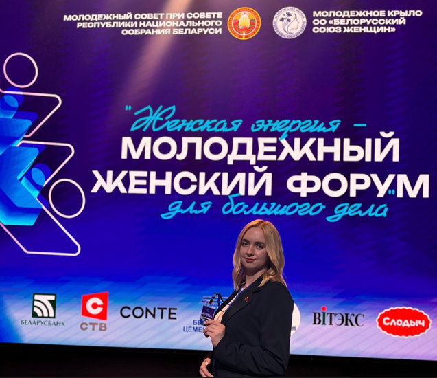 10 сентября 2025 г. студентка факультета математики и естествознания Щербакова Полина приняла участие в церемонии открытия первого Республиканского молодежного женского форума «Женская энергия для большого дела». Форум стал важной инициативой общественного объединения «Белорусский союз женщин» и Молодежного совета при Совете Республики Национального собрания Республики Беларусь. Его цель — всестороннее раскрытие потенциала молодых женщин, формирование позитивного отношения к семье и детям, а также поддержка в вопросах семейного благополучия и развитие лидерских качеств.
