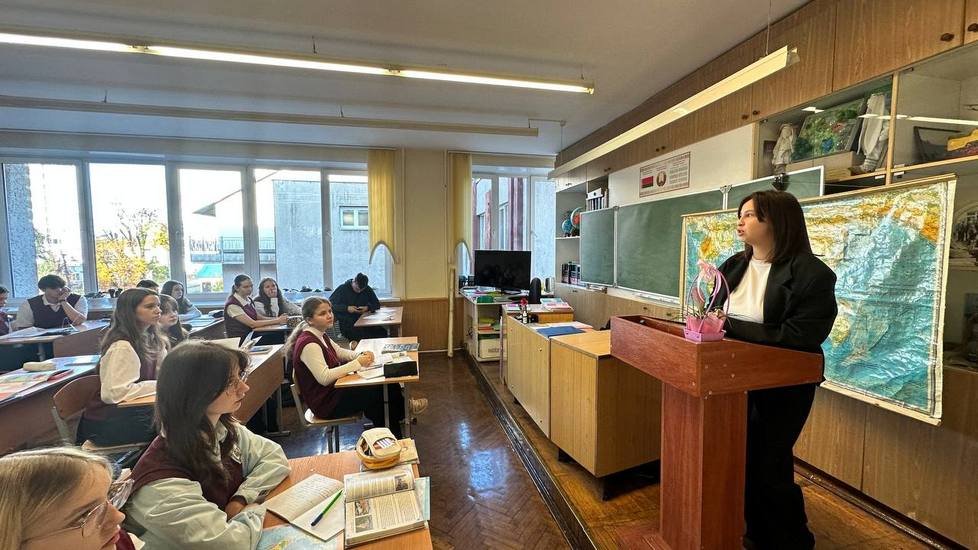 Студентка факультета математики и естествознания Кравченко София посетила МГОЛ №3 с профориентационной встречей с учениками 11-х классов.