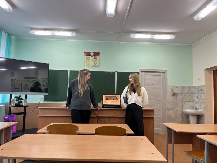 В стенах средней школы № 27 г. Могилева состоялась профориентационная встреча учащихся 11 классов со студентами факультета математики и естествознания — Старишевой Дарьей и Нижегородовой Дарьей.