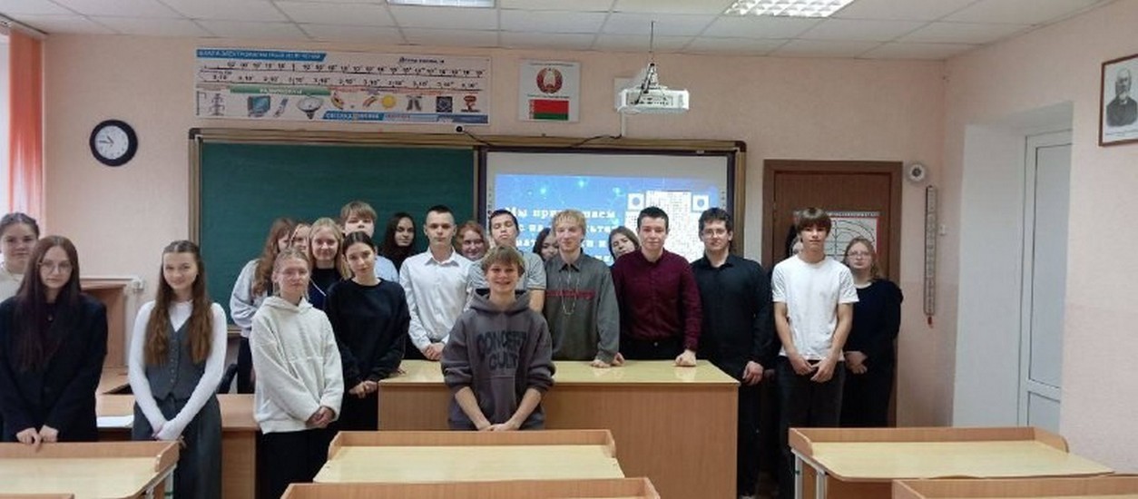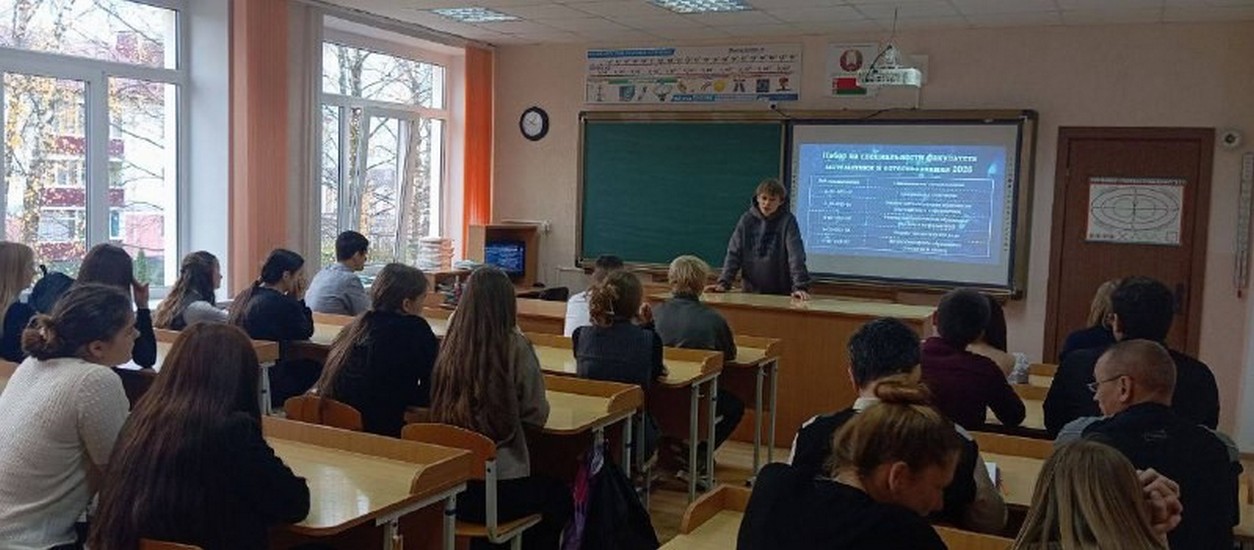 Студент факультета математики и естествознания Куломиец Сергей посетил среднюю школу № 1 г. Белыничи с целью провести профориентационную беседу с выпускниками.