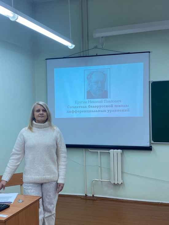23 января 2026 г. заведующий кафедрой математики Марченко И. В. провела встречу со студентами факультета математики и естествознания в рамках мероприятий ко Дню белорусской науки. Выступление было посвящено белорусской школе дифференциальных уравнений и ее представителям, которые работали и работают в нашем университете. Она рассказала о том, какие разные и непростые судьбы бывают у известных ученых, каким может быть путь в науку, о том, как много важных и нерешенных еще задач в математике.